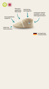 Anyone who sees and feels these magical crawling shoes can feel the love and care that went into their production. Everything is made by hand, so lovingly. Children's feet look forward to putting them on. You walk in leather shoes like you would barefoot, only safer.